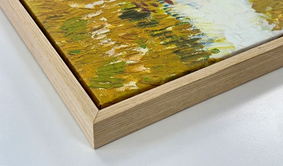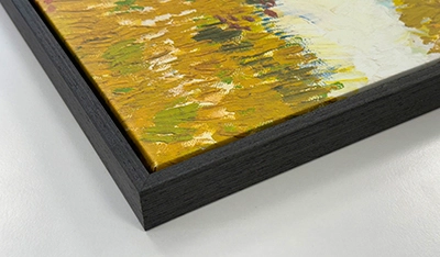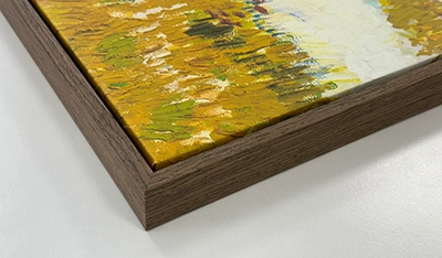 Uskladite sliko s slogom svojega interierja in ji dajte prefinjen videz. Naši ekskluzivni leseni okvirji z mat zaključkom dodajo sliki globino in profesionalen videz. Zaradi 5 mm razmaka med okvirjem in platnom nastane učinek „lebdeče“ slike, ki poudari robove in teksturo.